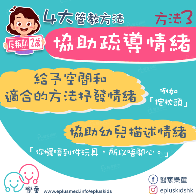 孩子的情緒疏導同樣重要,由於兩歲兒童的語言能力尚未成熟,他們常常無法準確表達情緒。當幼兒發脾氣時,家長可以幫助他們用簡單的語言描述情緒,替他們說明表達,例如:「你因為拿不到玩具而感到不開心」。同時,亦可給予他們發洩情緒的空間,比如「掟枕頭」,也能有效緩解他們的情緒壓力。如需要,亦可帶他們離開現場作冷靜。