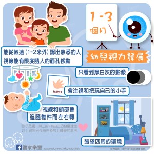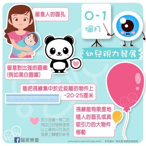嬰幼兒有不同視力發展階段,父母要掌握及了解嬰幼兒視力發展的特性,才能及早發現寶寶是否有異常視力的情況出現。就讓我們分析一下由嬰兒出世至 3歲幼兒的視力發展情況,讓父母能有更深入的了解。
