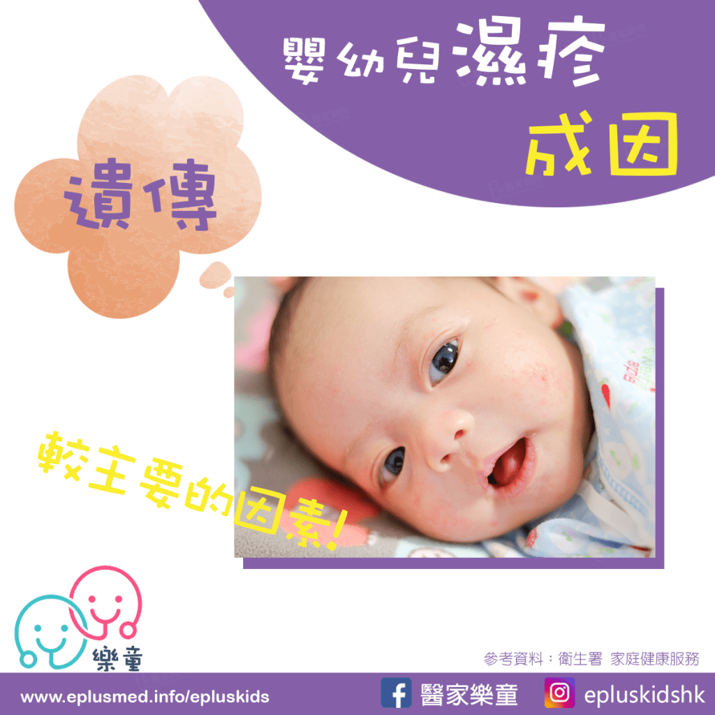 若父或母患有濕疹,遺傳給子女的機會超過5成;如父母均患濕疹,遺傳的機會將會更高。不過仍需視乎父母濕疹的嚴重程度,若只屬輕微,如痕癢、乾燥等,遺傳機會則較低。