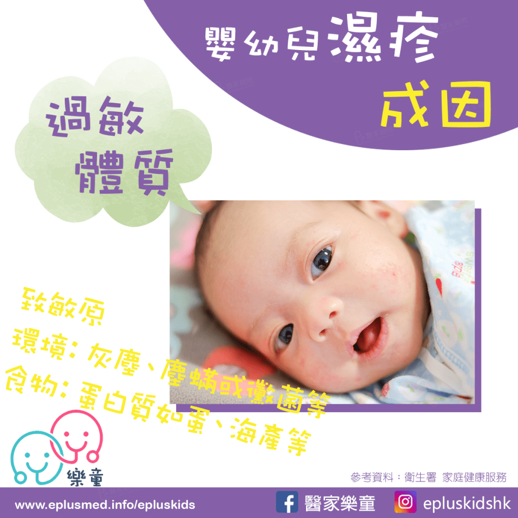 嬰幼兒濕疹是非常普遍的,多生長在面頰、唇邊、頸部、手腕、 肘彎及小腹皺褶等地方。