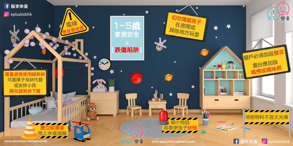 - 家長應時常留意子女的活動或舉動,切勿獨留兒童在房間或其他地方玩耍。