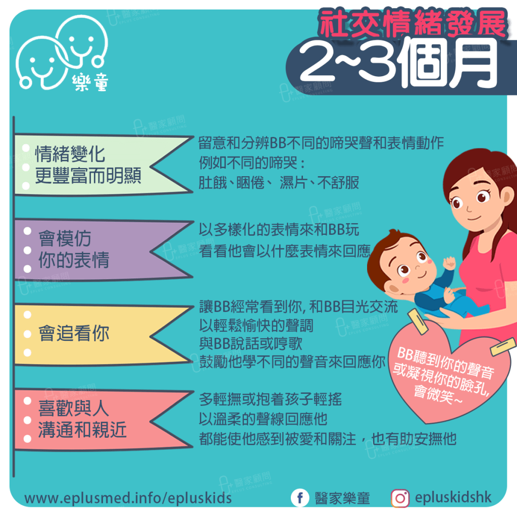 家長可多了解BB在不同的成長階段可能會出現的社交情緒表現,以更有效地回應BB的需要。