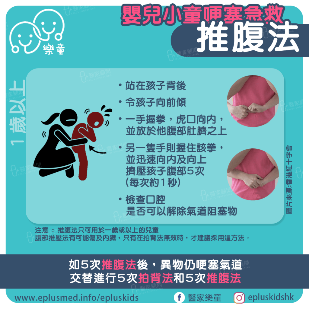 - 「推腹法」只可用於一歲或以上的兒童,太細的嬰幼兒並不適合。