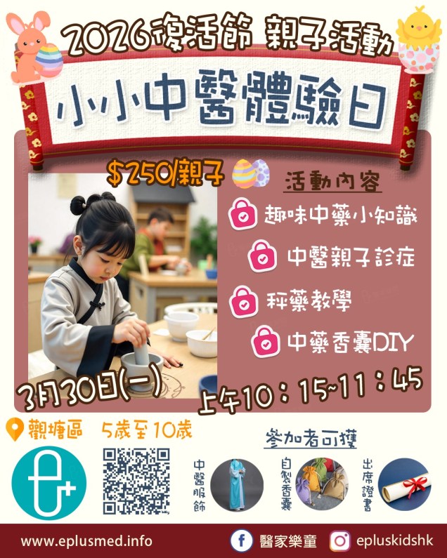想為孩子安排一個特別的復活節假期活動?來參加我們的【小小中醫體驗日】,讓孩子化身「小小中醫師」,探索中醫的奧秘!