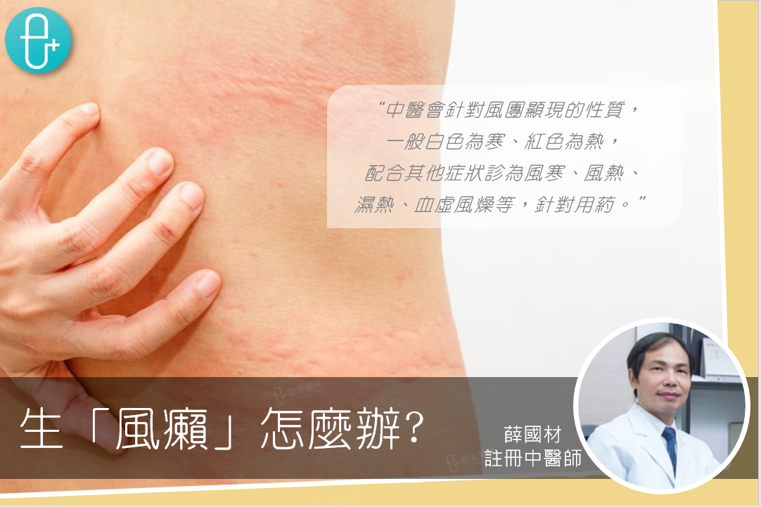 中醫會針對風團顯現的性質,一般白色為寒、紅色為熱,配合其他症狀診為風寒、風熱、濕熱、血虛風燥等,針對用葯。