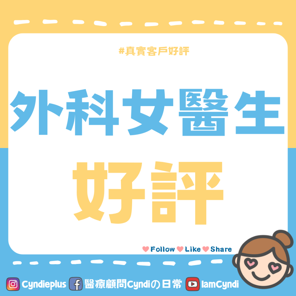 真實客戶好評 睇私家醫生怕收費高之餘,又怕醫生質素差、資歷不足?加入真實客戶對醫生表揚及診症分享,等大家了解更多,加倍安心同信心。 外科女醫生好評17 May 2024 外科醫生好評10 Jan 2024 牙科醫生好評9 Dec 2023 兒科醫生好評2 Dec 2023 男醫生都可以好細心30 Nov 2023 ↪️ 回到 醫療顧問Cyndiの日常 主頁 分享 SHARE Click to share on WhatsApp (Opens in new window) WhatsApp Click to email a link to a friend (Opens in new window) Email Like Loading...