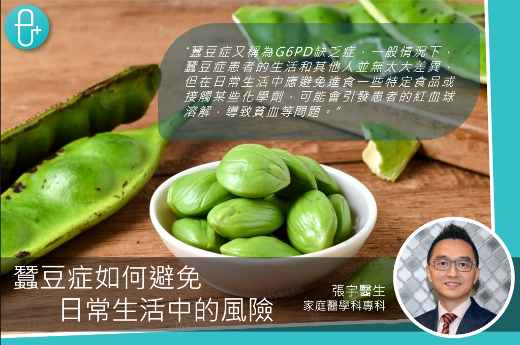 飲食方面,患者要留意避免進食蠶豆, 無論是新鮮或其相關的製品,當大量攝入後可能引發紅血球溶解, 進而出現黃疸等病徵。