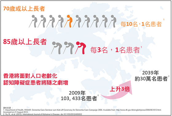 現時全球每3秒便有1人確診認知障礙症,而本港每10名70歲或以上長者便有1名患者,85歲以上患病比率更高達三分之一。