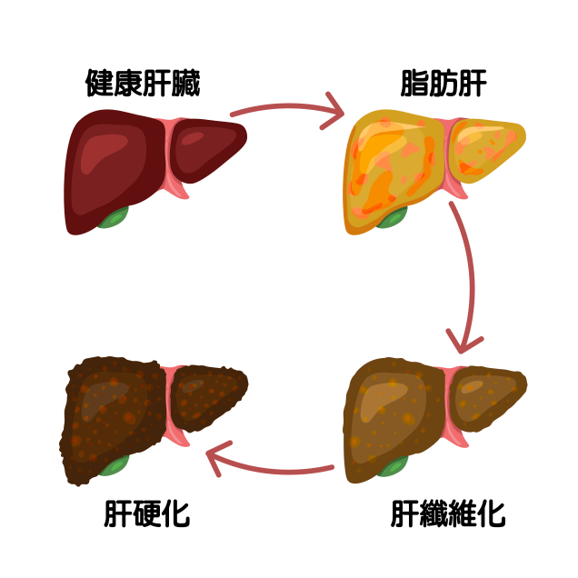 健康的肝臟 ⏩ 脂肪肝 ⏩ 肝炎⏩ 肝纖維化 ⏩ 肝硬化 ⏩ 肝癌