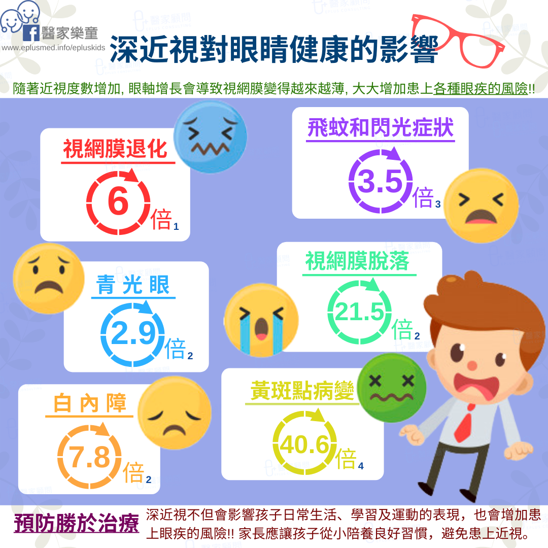 近視度數不斷增加,會令眼軸增長,導致視網膜變得越來越薄,增加患上各種眼科疾病的風險。