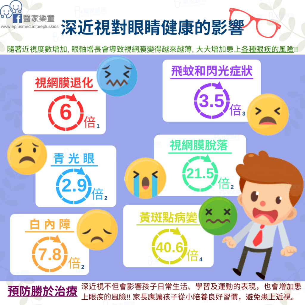 預防勝於治療,深近視不但會影響孩子日常生活、學習及運動的表現,也會增加患上眼疾的風險。家長應讓孩子從小陪養良好習慣,避免患上近視,也要提防近視加深的情況。