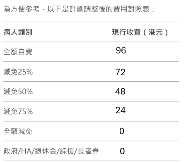 患者每次在社區血液透析中心接受治療,需繳交相當於醫管局腎科診所日間程序及治理收費水平的費用。