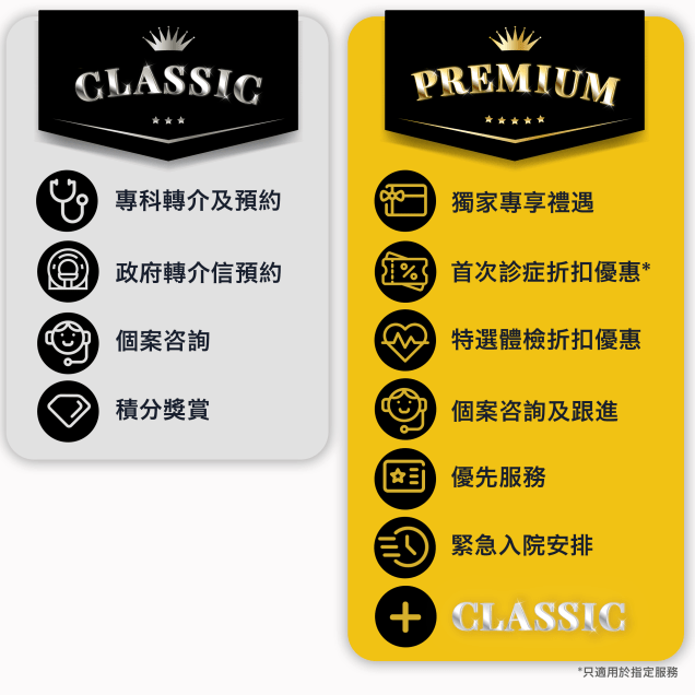 醫家會員有兩類會籍,分別為「Classic會員」;以及「Premium會員」。