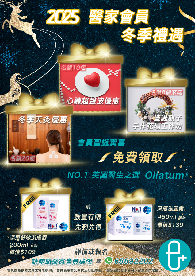 醫家季度禮遇 只限醫家會員獨享!會員亦可轉讓至合資格親友及客戶享有。會員如有興趣享用各項禮遇,請細閱會員登記電郵內之相關郵件,或聯絡6889 2202 向客戶服務員查詢。
