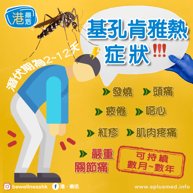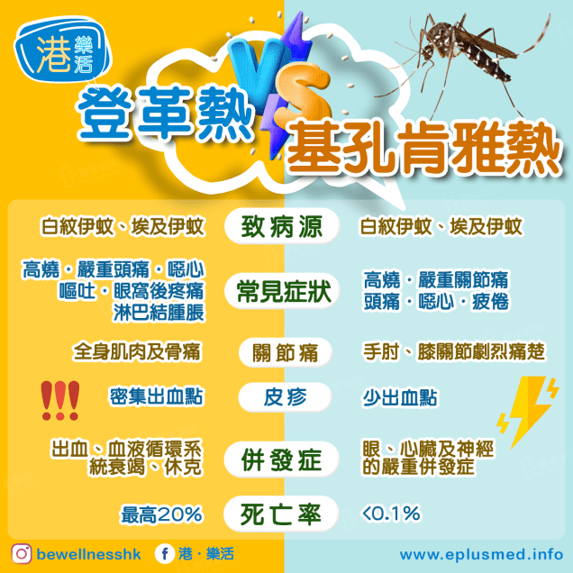 | 基孔肯亞熱 | 高燒、嚴重關節痛、皮疹 | 慢性關節炎(可持續數年) | 埃及斑蚊、白紋伊蚊 | ❌ |