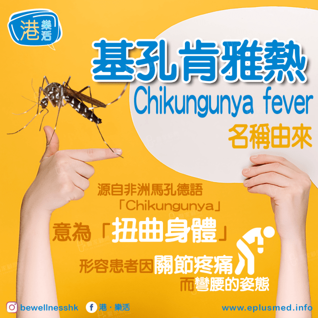 源自非洲馬孔德語「Chikungunya」,意為「扭曲身體」,形容患者因關節疼痛而彎腰的姿態。