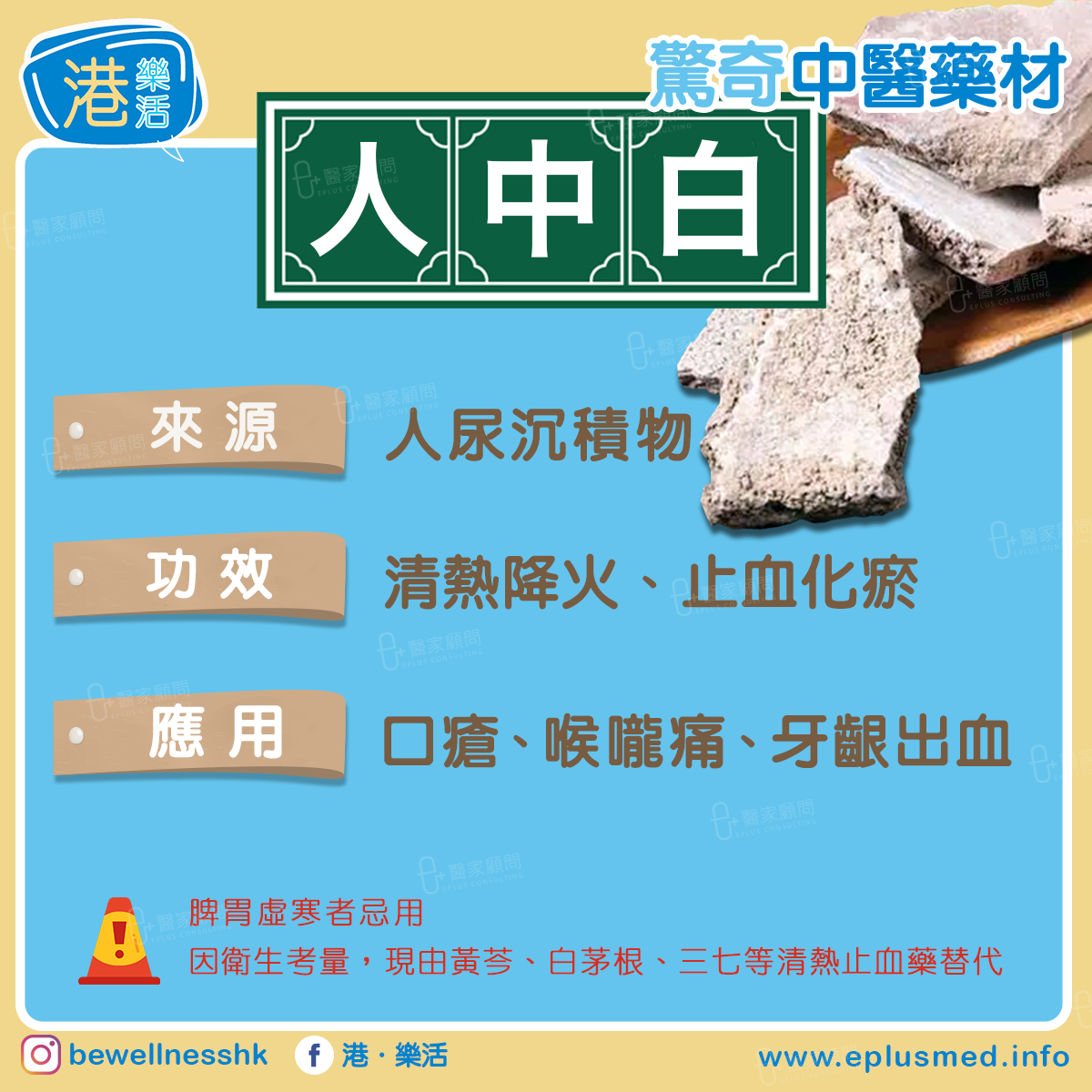 ❌人中白是古代物質匱乏時期的特殊藥材,傳統認為其寒性能「降火」,但現代醫學無明確藥理證據支持,而且存在衛生問題,現代中醫已徹底淘汰,僅作為醫史文獻研究對象。
