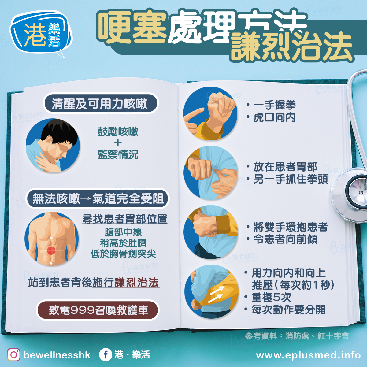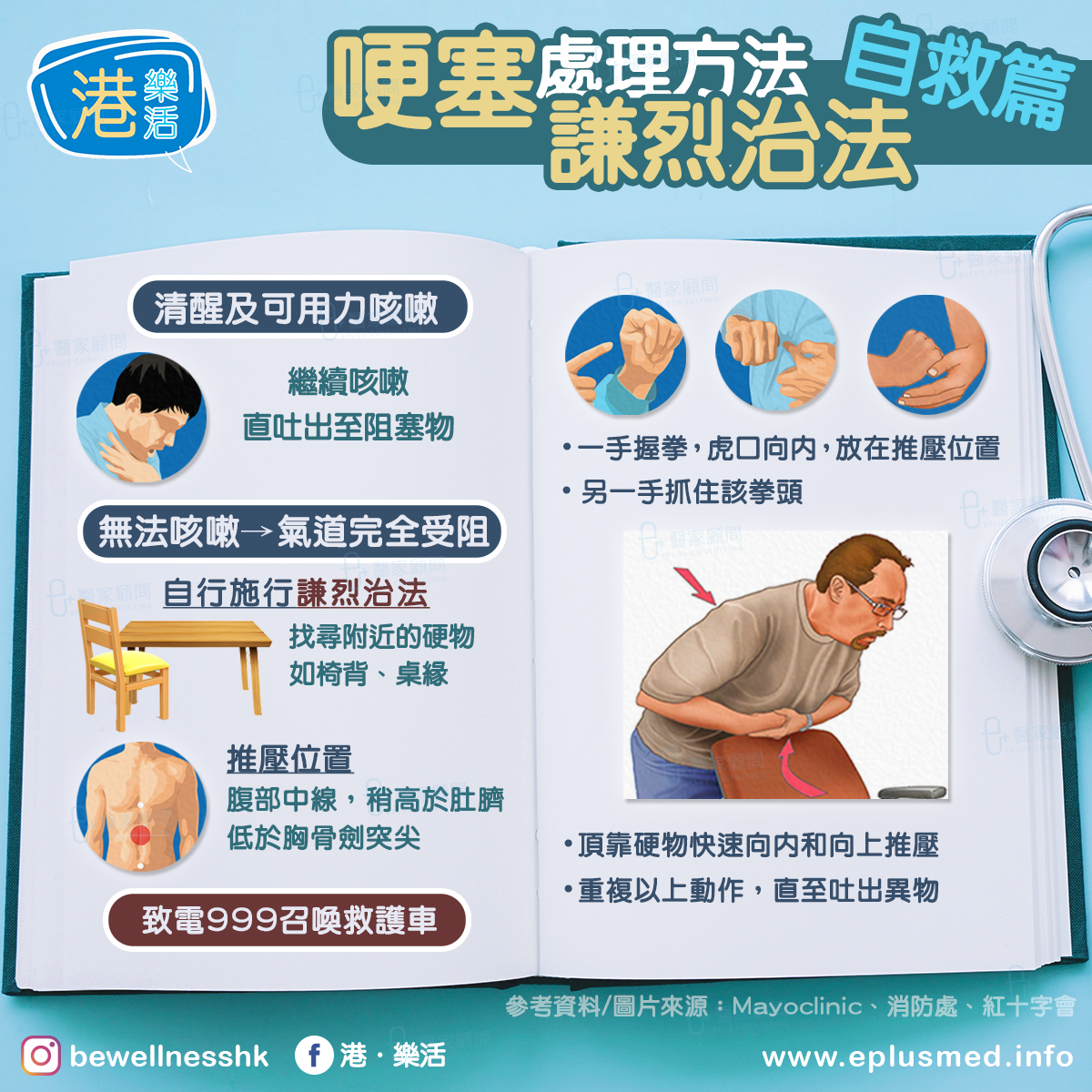 香港紅十字會及消防處均有製作影片教大眾如何正確處理哽塞的情況。