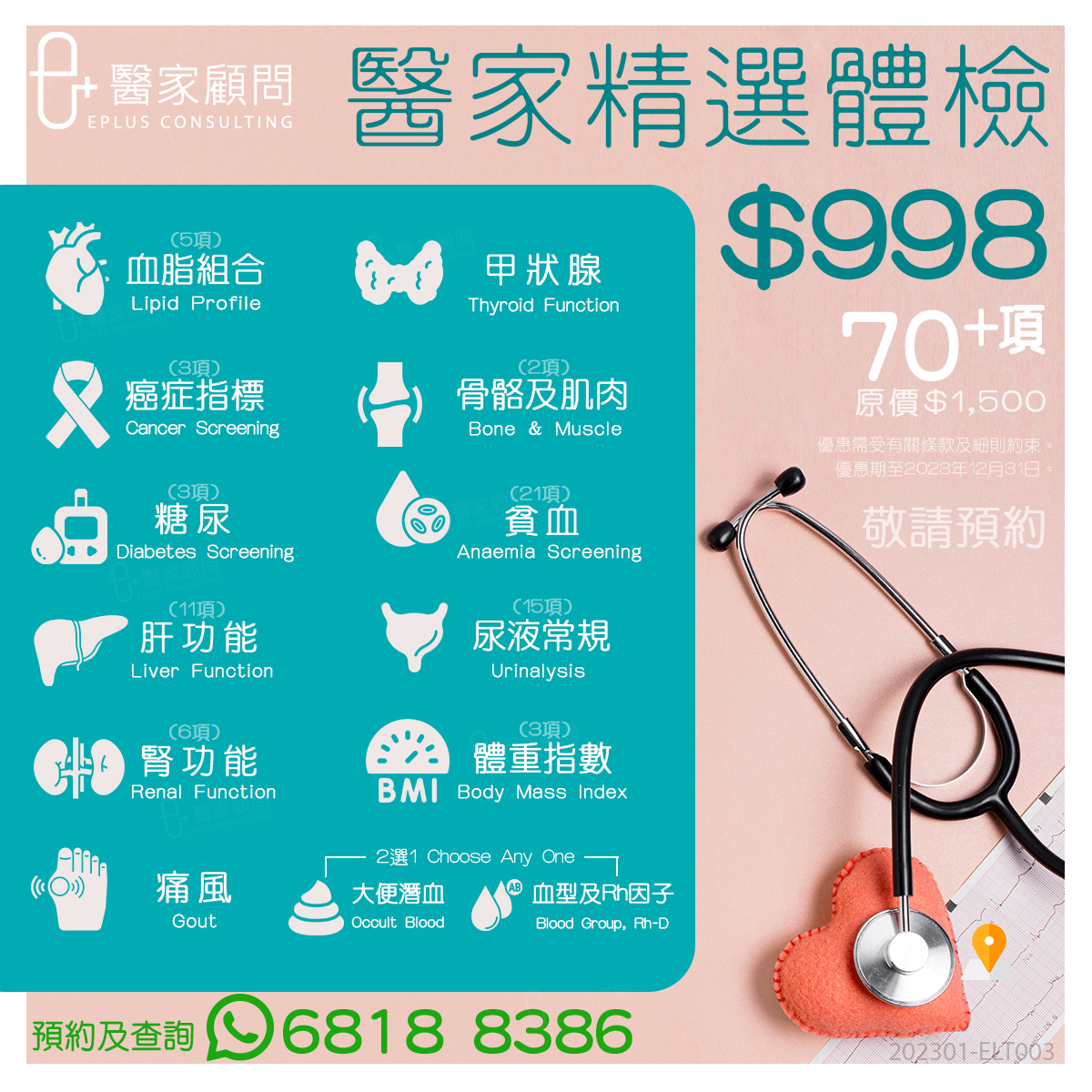 醫家顧問E Plus Consulting Co., Ltd. 收到公眾查詢及告之,有個人或團體以類似本公司名稱進行電話對公眾推銷體檢,以及於社交媒體宣傳。醫家顧問E Plus Consulting Co., Ltd嚴厲譴責任何假冒或嘗試假冒的行為,並將會報警處理和保留一切對有關的團體和個人法律追究的權利。