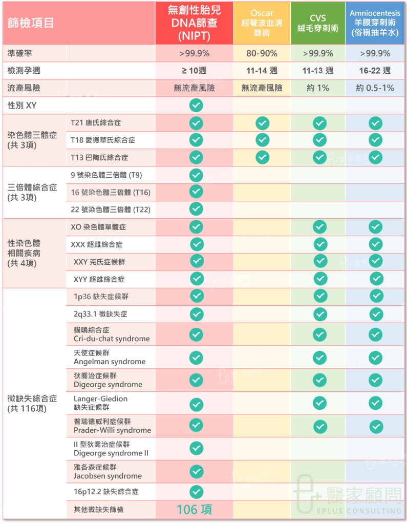 ● 檢測準確:檢測唐氏綜合症、愛德華綜合症等的準確度高達99.9%;