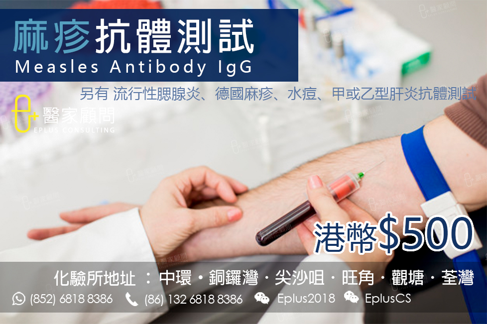 不確定有沒有接種齊麻疹疫苗的人士,或是孕婦及備孕的女士,可考慮檢驗體內的麻疹抗體。沒有麻疹病史的外籍家庭傭工應盡快進行麻疹抗體測試。在香港以外地區出生的人,亦可以進行麻疹抗體測試。