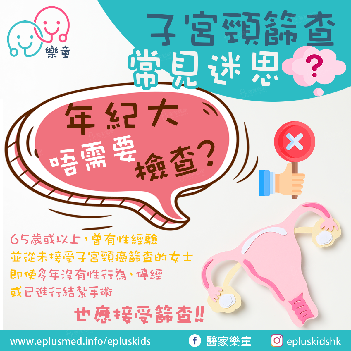 ❌65 歲或以上而曾有性經驗並且從未接受過子宮頸癌篩查的女士,即使多年沒有性行為、停經或已進行結紮手術,也應接受篩查。